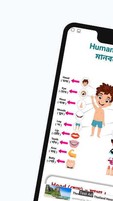 ● جسم الإنسان هنا يمكنك معرفة أسماء أجزاء جسم الإنسان باللغتين الإنجليزية والبنغالية