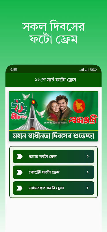 قم بتزيين صورك بإطارات الصور الرائعة ليوم 21 فبراير وإطار صور 26 مارس وإطار صور shadhinota dibosh وتطبيق إطارات صور يوم النصر في بنغلاديش في 16 ديسمبر.