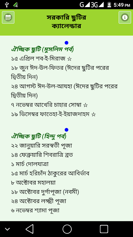 معلومات সরকারি ছুটির ক্যালেন্ডার ২০১৮ - bd calendar 2018 APK