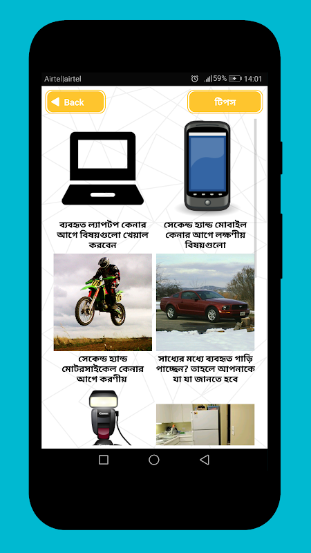 نصائح لشراء أشياء مستعملة أشياء مستعملة هو تطبيق تعليمي بنغالي حول النصائح والحيل. الأشياء القديمة غالبًا ما نشتري الأشياء القديمة لأن سعر الأشياء القديمة أو المستعملة أقل بكثير من شراء الأشياء الجديدة. لكن في كل الأحوال هل يمكننا اختيار الشيء الجيد؟ من المهم معرفة بعض الأشياء قبل شراء العناصر القديمة أو المستعملة ، وإلا فقد ينخدعنا بشرائها. لقد أنشأنا هذا التطبيق حتى لا تضطر إلى الغش في شراء أشياء مستعملة. كل شيء في هذا التطبيق: