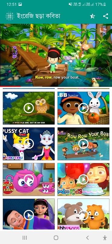 আপনার ছোট খোকা-খুকির জন্যে মজার মজার ছোটদের বাংলা ছড়া কবিতা (chotoder bangla chora kobita) ও ছোটদের ইংরেজি ছড়া কবিতা (القوافي الإنجليزية للأطفال) বা ছড়া গান (تشورا غان) পেতে আমাদের অ্যাপসটি ডাউনলোড করুন। এখানে আপনার সোনামণিদের জন্য প্রায় ৬০ টির ও বেশি সুন্দর সুন্দর বাংলা ও ইংরেজি ছড়া কবিতা (البنغالية والقوافي الإنجليزية) যুক্ত করা হয়েছে। সোনামণিদের মিষ্টি ছড়া কবিতা বা ছড়া গান গুলো সম্পূর্ণ অফলাইনে (أغاني حضانة الأطفال غير متصلة بالإنترنت) কবিতার পাশাপাশি ছোটদের বাংলা ভিডিও ছড়া কবিতা (مقاطع الفيديو البنغالية القوافي) ও ছোটদের ইংরেজি ভিডিও ছড়া কবিতা যুক্ত করা হয়েছে। যার ফলে আপনার ইন্টারনেট সংযোগ থাকলেই আপনি ভিডিও ছড়া কবিতা দেখতে পারবেন। প্রায় ৮০ টি বাংলা ও ইংরেজি ভিডিও ছড়া কবিতা যুক্ত করা হয়েছে।