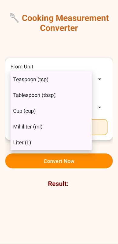 يعد تطبيق Cooking Measurement Converter مساعدك المثالي في المطبخ لتحويل الملاعق الصغيرة، والملاعق الكبيرة، والأكواب، والمليلترات، واللترات بسهولة. سواء كنت تقوم بتوسيع نطاق الوصفات أو التبديل بين وحدات القياس الأمريكية والمترية، فإن هذا التطبيق البسيط والأنيق يغطي احتياجاتك.