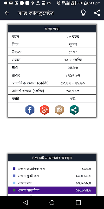স্বাস্থ্য ক্যালকুলেটর - BMI Ca 1.8
