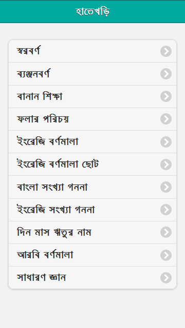 বাচ্চাদের হাতেখড়ি এপটিতে রয়েছেঃ