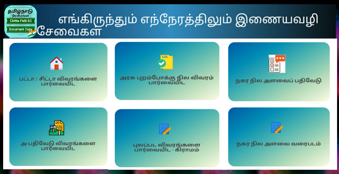 Tamilnadu Land Chitta FMB EC أ. نسخة من السجل ونسخة من وثيقة الأرض تطبق جميعها عبر الإنترنت