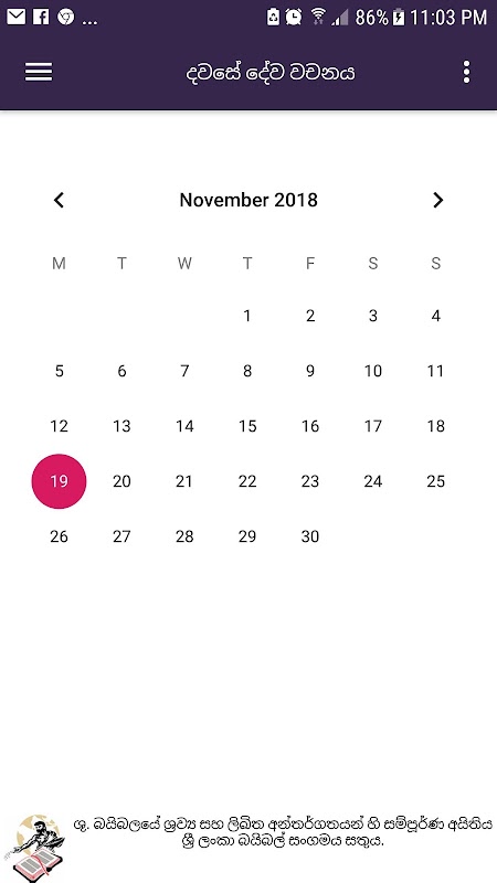 يمكنك الاستماع وقراءة الكتاب المقدس باللغة السنهالية. كما يتيح لك قراءة ، مرحبا ، وإضافة الملاحظات إلى آيات الكتاب المقدس المفضلة لديك.