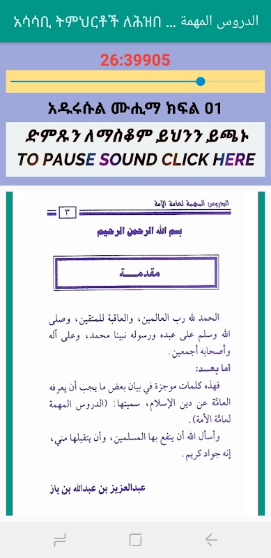 አዱሩሱል ሙሒማ ሊኣመቲል ኣመህ አስፈላጊ ትምህርቶች ለብዙሓኑ ማህበረሰብ በኡስታዝ አቡአብደላህ ኢብንኸይሩ ተቀርቶ የተጠናቀቀ ኪታብ ደርስ ነው ። ይህ አፕልኬሽን ኪታቧን በደንብ ተረድተናት ተግባራዊ እንድናደርጋት ያግዘናል። በህይወታችን ውስጥ ወሣኝ የሆኑ አስፈላጊ ትምህርቶችን አካትታ የያዘች ኪታብ ናት። ጠንክራችሁ ቅሩ ። ለቤተሰቦቻችሁ ለጓደኞቻችሁም አፕልኬሽኑን ሼርርርር በመደራረግ የዲን እውቀትን አስጨብጡ ።