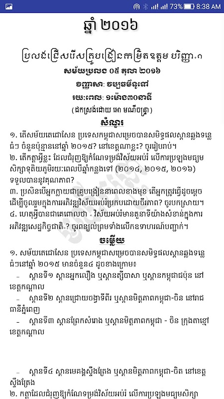 Improve you understanding of Khmer General Knowledge with this good Khmer app right from your Smartphone! You can learn and memorize all the Questions and Answers regarding general knowledge which is very important for you to be a good citizen or apply for a job or scholarship. If you enjoy using Khmer Song Quiz or Other Khmer Story book, you will love this app.