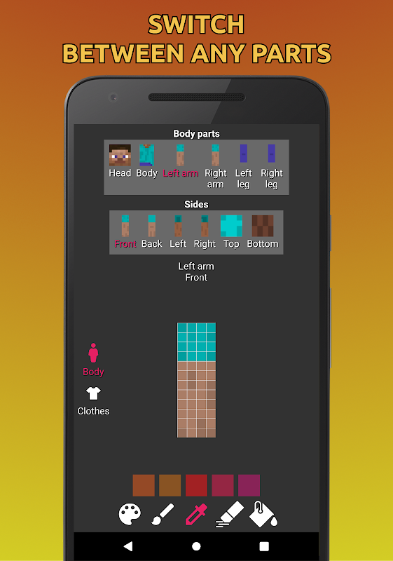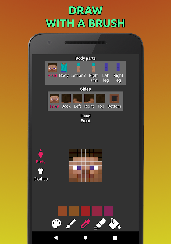استخدم أداة الفرشاة ، الشافطة أو الملء لتجعل بشرتك فريدة من نوعها! البشرة الحصرية و النوعية التي يمكنك استخدامها في اللعبة الآن!