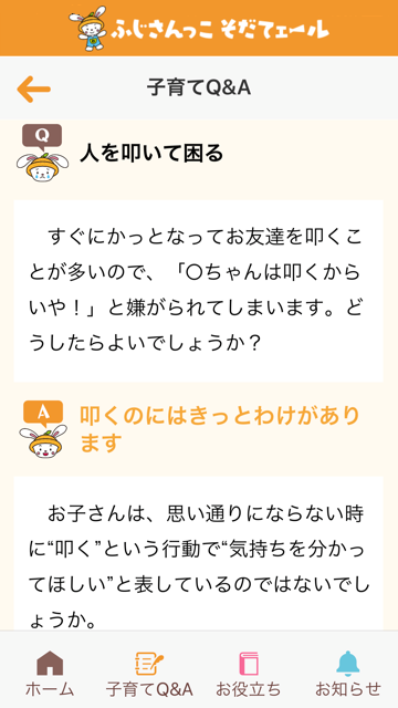 子育てや保育に行き詰まることって、ありますよね。この「ふじさんっこ そだてェール」は、そんな「困ったなぁ」というときに開いていただきたいアプリです。