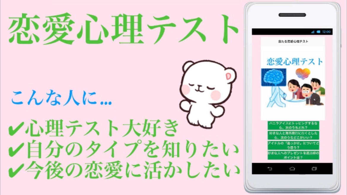 こちらのアプリは恋愛の心理テストを読み物形式にしたアプリです。