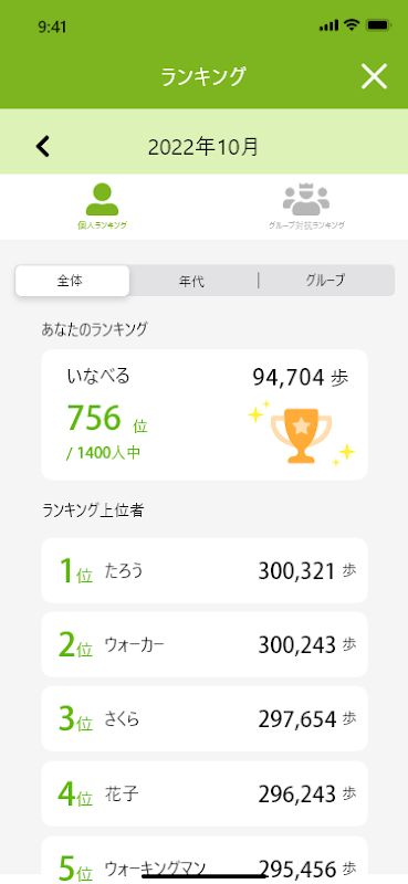 قياس الخطوات / معدل تحقيق الخطوات المستهدفة / عرض السعرات الحرارية المحروقة / سجلات الوزن وضغط الدم والفحوصات الطبية / عرض مؤشر كتلة الجسم / عرض الرسوم البيانية للخطوات الشهرية والسعرات الحرارية المحروقة والوزن وضغط الدم / الترتيب الشخصي (بشكل عام ، العمر ) / ترتيب المنافسة الجماعية / تأكيد المشاركة في الأحداث المختلفة (QR) / دورة المشي الافتراضية / شاشة طلب اليانصيب / توزيع الإشعارات من مدينة Inabe / توزيع الاستبيان / وظيفة التسليم / الاستفسار