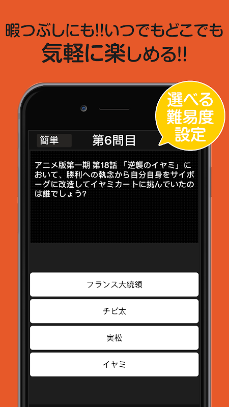 本アプリでは大人気アニメ『おそ松さん』に関するクイズを四択形式で出題!!