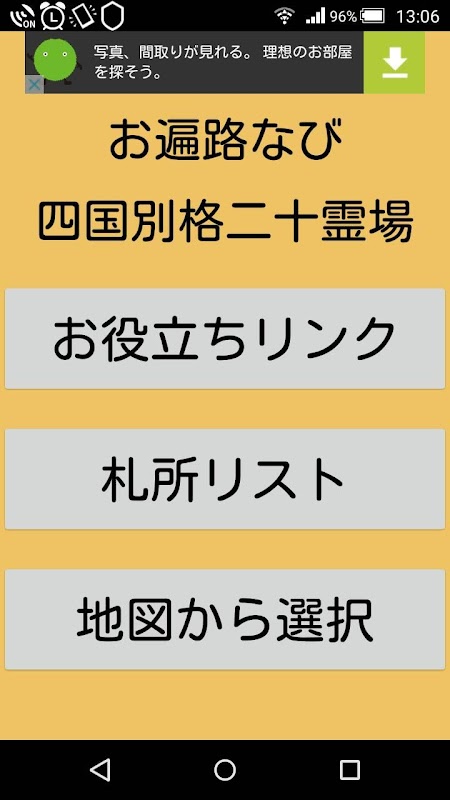 四国別格二十霊場の巡拝をサポートするアプリです。福祉用具の専門家である作業療法士監修で字やボタンが大きく、中高年をはじめ使う人にやさしいアプリです。