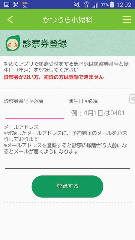 ・診察券登録(1つのアプリで複数のお子様の診察券番号が登録できます)