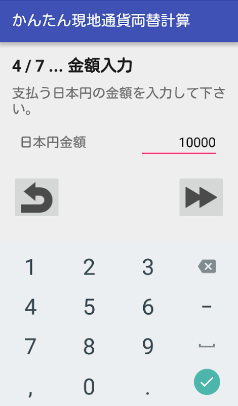 外貨(現地通貨)両替の知識がなくても、画面の指示に従って入力していくだけで簡単に外貨(現地通貨)の両替に関する金額が分かる!