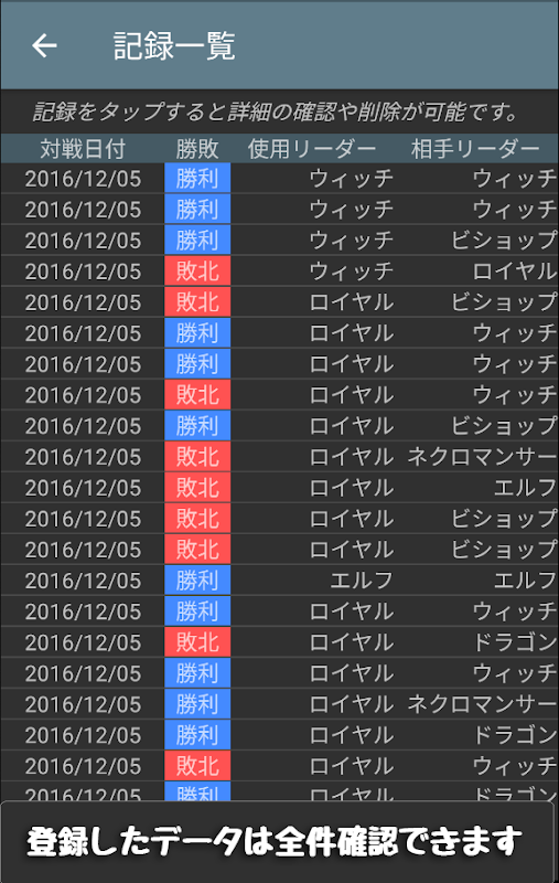 シャドウバース(Shadowverse)の対戦記録を集計しグラフ化するアプリです。自己分析だけでなく、統計情報から最近の傾向などを分析することができます。