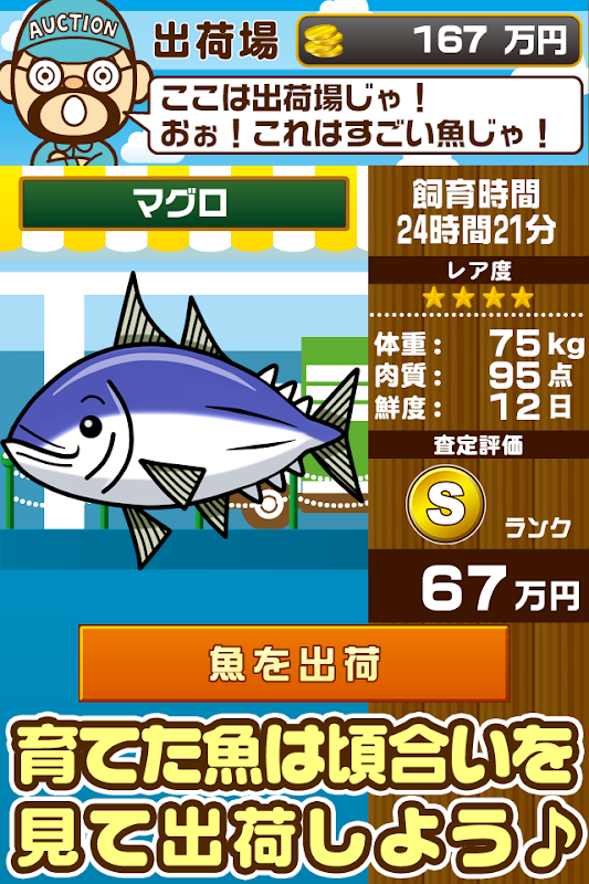 大切に育てた魚を出荷してお金を稼ぎましょう!
