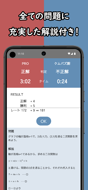 سوباتو ليس مجرد مجموعة من المشاكل. تحدي المسائل الرياضية في شكل معركة وتنافس ضد خصمك من أجل الدقة والسرعة! إذا فزت، سيرتفع تقييمك، وإذا خسرت، سينخفض تقييمك! هذا الشعور بالتوتر يجعل الدراسة اليومية ممتعة، مثل اللعبة.
