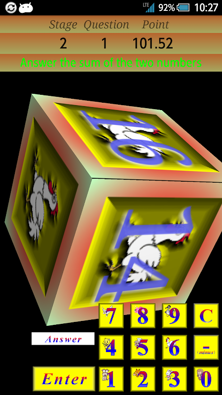 立方体(キューブ)、フラッシュ暗算それぞれ9問が9ステージあります。各問に得点が付きます。