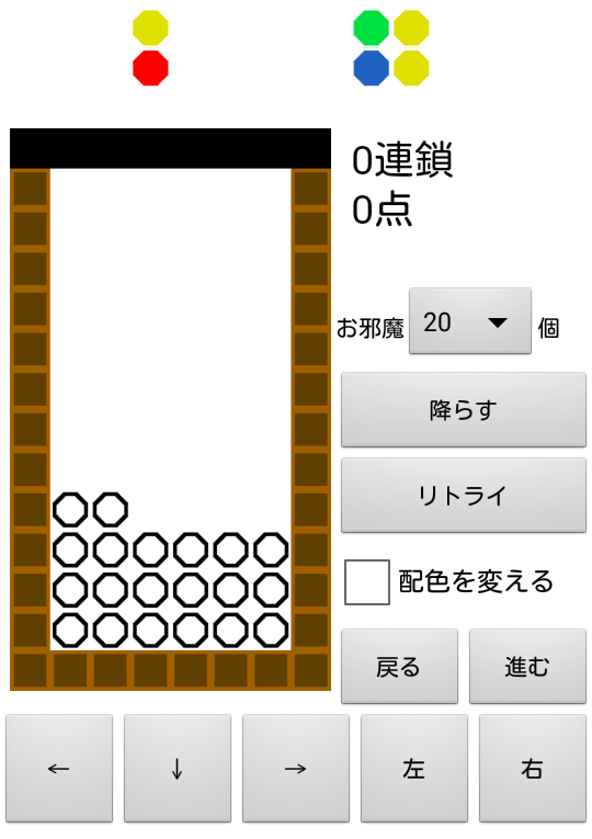 手順を戻したり進めたりする他、同じ/異なる配列でのリトライ、おじゃまを降らせることにも対応しています。