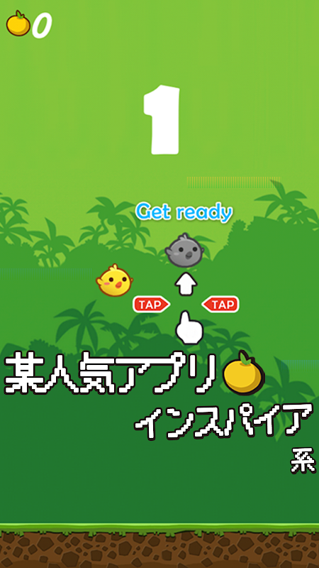 画面タップでかわいい「とり肉」をうまくジャンプさせ、大好きなみかんをGET!