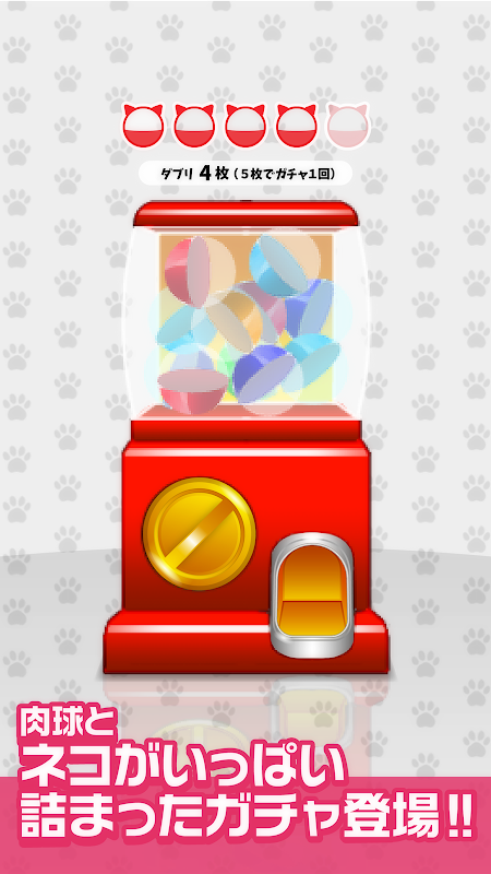 ガチャガチャの残り回数が0になったら、ねこのごはんを用意すると、ガチャがひけるようになるよ!