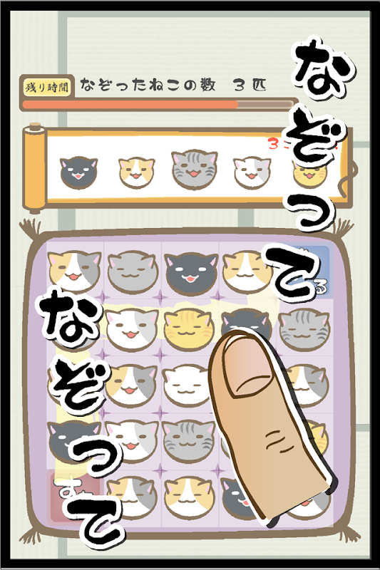 ・稀に出てくる小判をなぞると、問題とお題が全て同じねこになります。