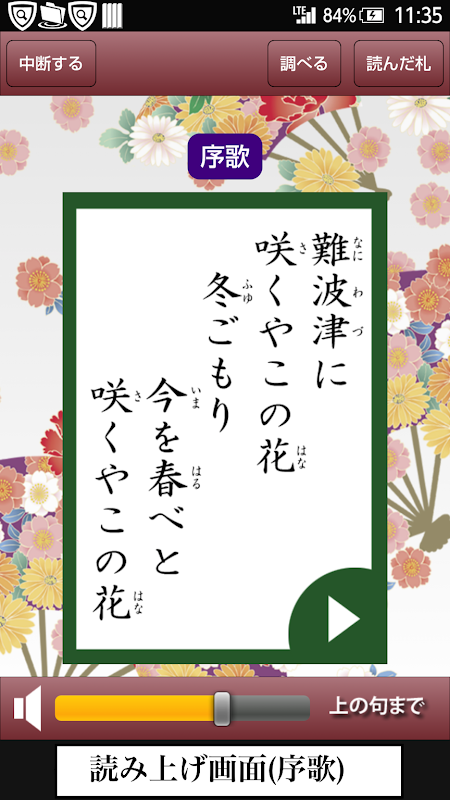 かるたの読み上げの他、短歌の意味や決まり字を調べる機能もあります。競技かるた用としてはもちろん、初めての方、百人一首について勉強したい方にもおすすめです。