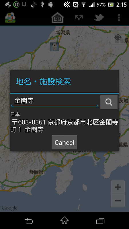試しに、目的地を「金閣寺」に設定した後、共有してみてください。