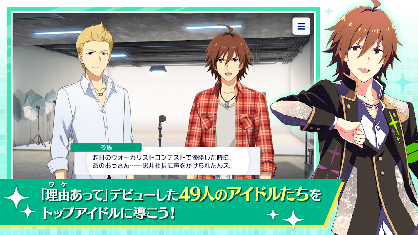 يصبح اللاعب منتجًا ويهدف إلى أن يصبح أحد الأيدولز المتميزين من الذكور ذوي الخلفيات المختلفة ، مثل الأطباء ، والضباط ، وضباط الدفاع عن النفس.