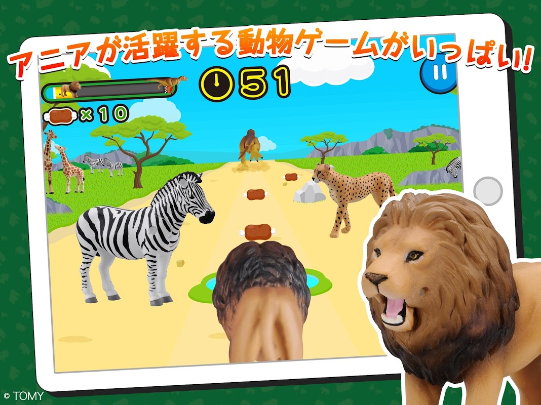 タカラトミーの動物フィギュア、アニアをコレクションしながら『どうぶつゲーム』、箱庭風の『ジオラマ(プレイセット)』、『図鑑カード』『おやこでミニゲーム』など、お子さまだけでなく家族みんなでアニアの世界を楽しめるアプリです。