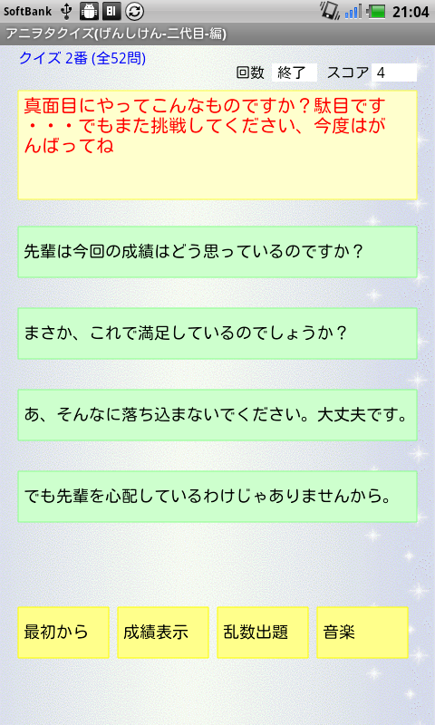 クイズの成績をファイルに保存でき、各設問の正解状況を表示することもできます!