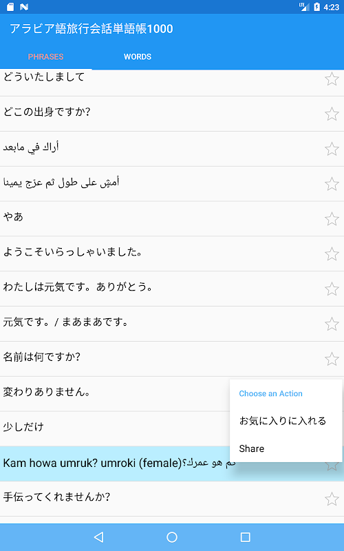 يمكنك تسجيل الكلمات والعبارات التي تريد أن تتذكرها كمفضلة عن طريق الضغط لفترة طويلة.