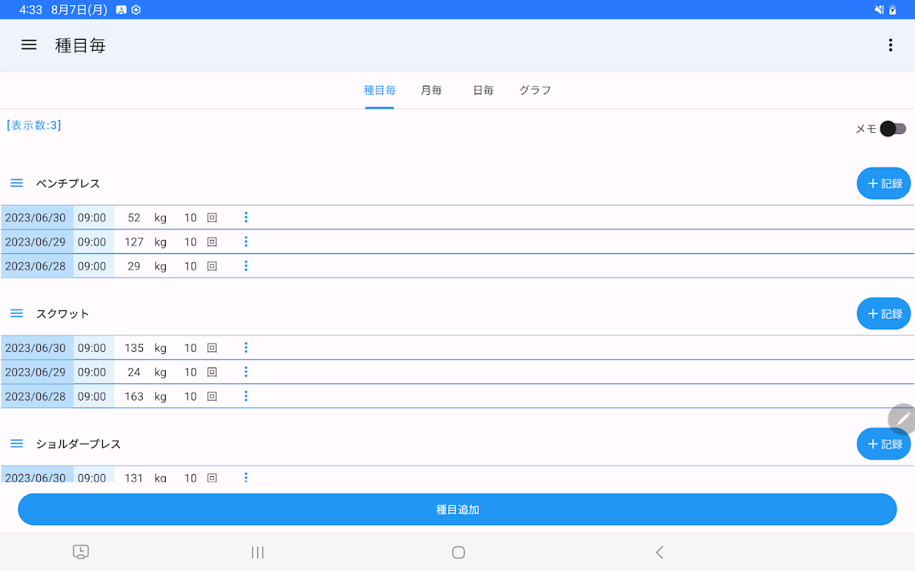 معلومات ウエイトトレーニング 記録帳 筋肉トレーニング 重量と回数 APK