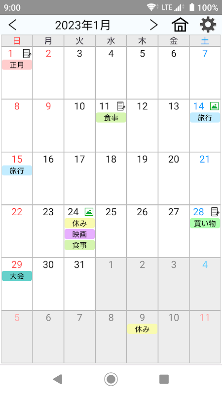 يعمل خفيف الوزن بتقويم بسيط. يمكنك كتابة المواعيد والمذكرات. يمكنك أيضًا إضافة الصور ومقاطع الفيديو.