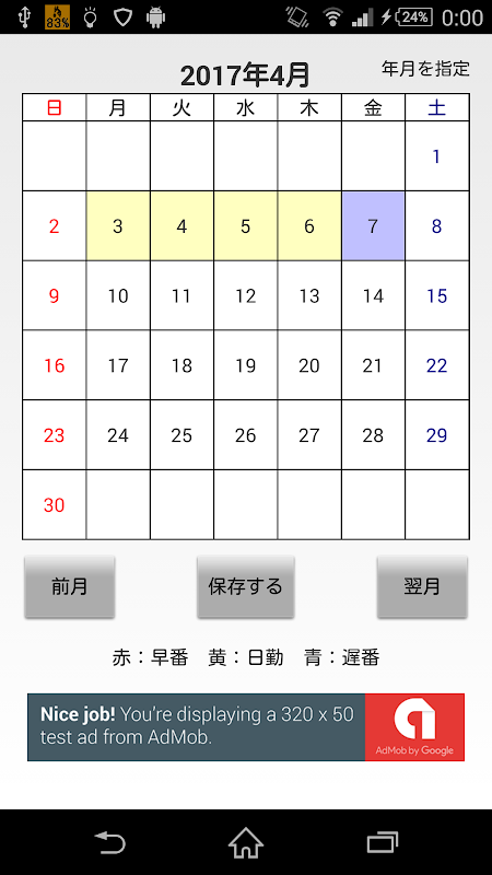 シンプルシフト勤務カレンダー 1.4