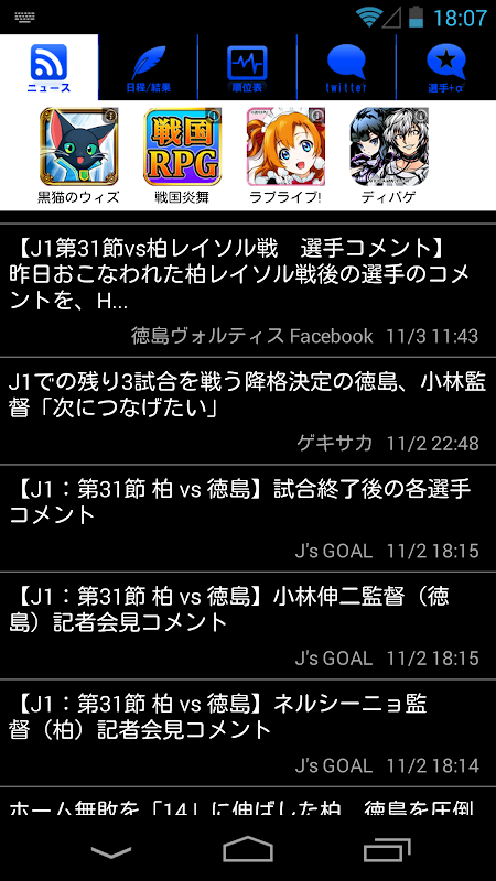 ニュースサイトやブログから徳島ヴォルティス情報に特化して表示します。
