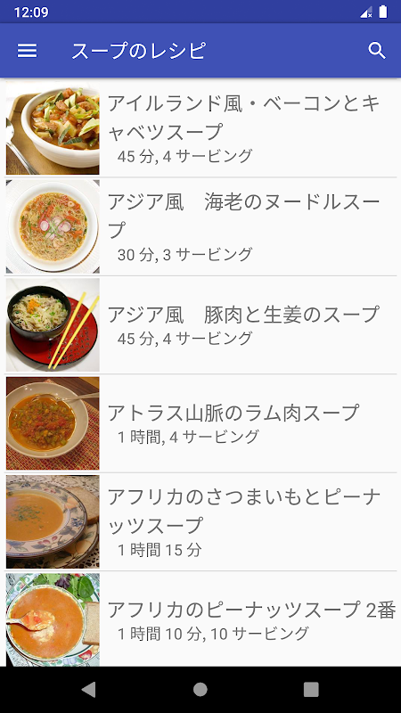 スープ は、肉、野菜や魚介類などを煮込んだ水分の多い料理。広義には、日本で汁(しる)や汁物(しるもの)とする料理や、羹(あつもの)や吸物(すいもの)とする料理など、および料理の構成要素である出汁(だし)やつゆなどを含めるが、狭義には欧風の汁物料理を指して言う。スープは本質的にソースと共通する部分が多いが、風味の濃縮度がやや低く、単体で食べる点が異なる。このスープレシピアプリは、すべての時間のために自由です。操作手順は、調理のために提供されます。だからでも子供たちは、この無料アプリを使用して任意の料理を準備することができます。私たちはスープレシピ 記録の膨大なコレクションを持っています。あなたもあなたのお気に入りのスープレシピ 無料をブックマークすることができます。あなたは非常に簡単に市場からそれを購入できるように、買い物リストに材料を追加することができます。