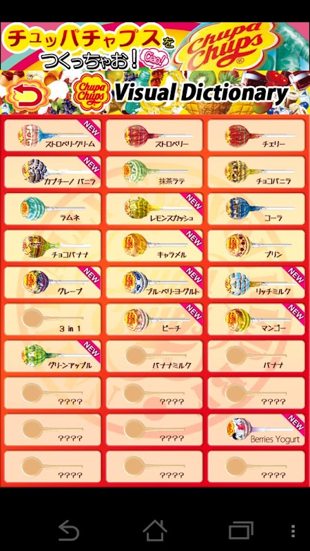 ・図鑑 : 収穫済の チュッパチャプスを閲覧できます。