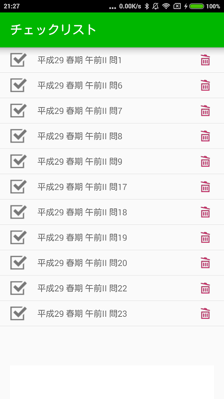 - 気になる問題、間違った問題にチェックをつけておけます。
