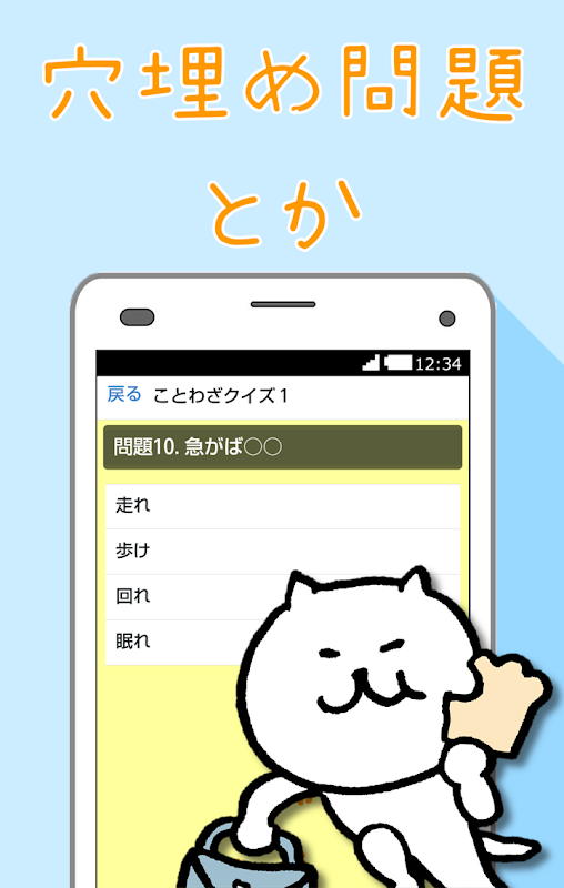 ニャンコ好きのためのお手軽ことわざクイズゆるい白猫さんと遊びながら諺や慣用句に詳しくなれる学習アプリですクイズのどこかに黒猫も現れるかも?