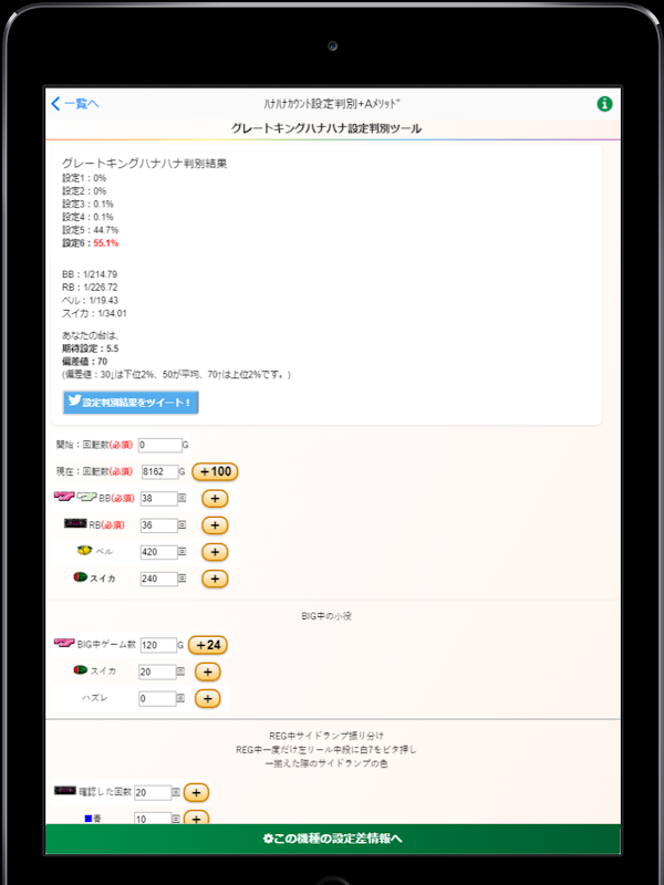 パチスロハナハナシリーズの高機能設定判別+カウントツールです。