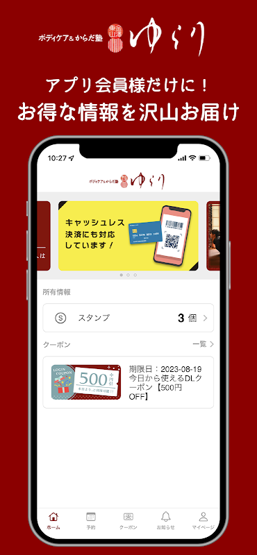 يمكنك الحصول على أحدث المعلومات والصفقات من [Body Care Yurari] من خلال التطبيق. بالإضافة إلى ذلك ، يمكنك التحقق من القائمة والفاصل الزمني المطلوب وإجراء الحجوزات من هاتفك الذكي في أي وقت. من خلال تثبيت التطبيق ، يمكنك استخدام [Body Care Yurari] بشكل أكثر ملاءمة وقريبة منك.