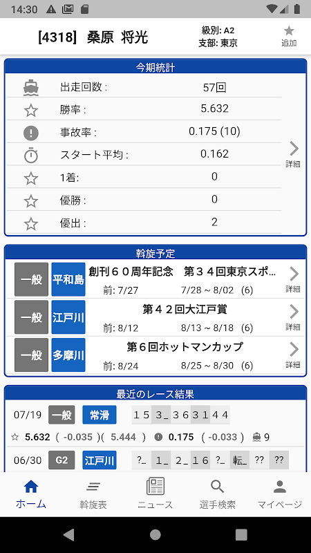 ・級別決定を意識した期別成績、4期成績など見れます