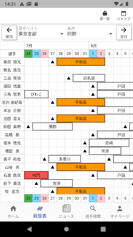 ・選手リストを作って今日のレース結果とニュースを一覧表示できます