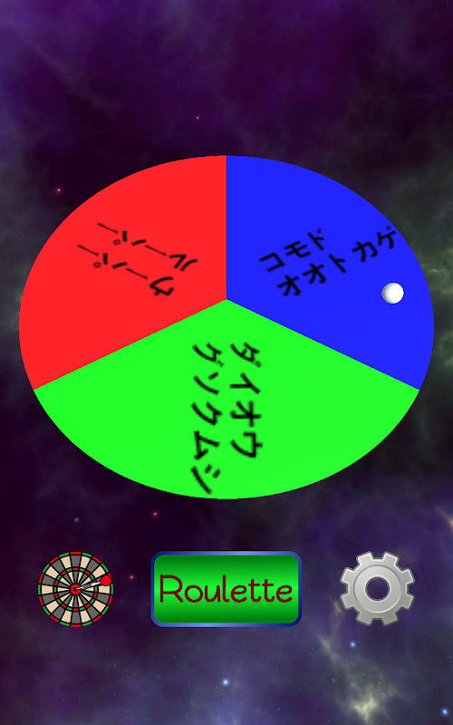このアプリはルーレット、ダーツ、設定画面から構成させます。
