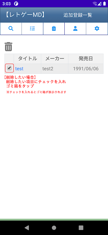 レトロゲーム(PCE)を管理するアプリです。