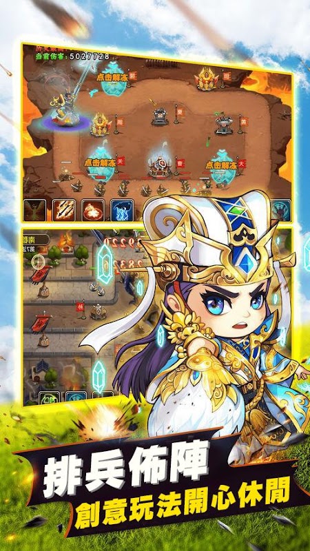 新概念塔防類三國手游震撼上線!全服熱血開戰! Q版英雄,萌味三國,群英矗立任你調遣,多名將多兵種,數百名三國英雄,鐵血抗敵。邀你一起出戰征程,亂世興旺由你掌控