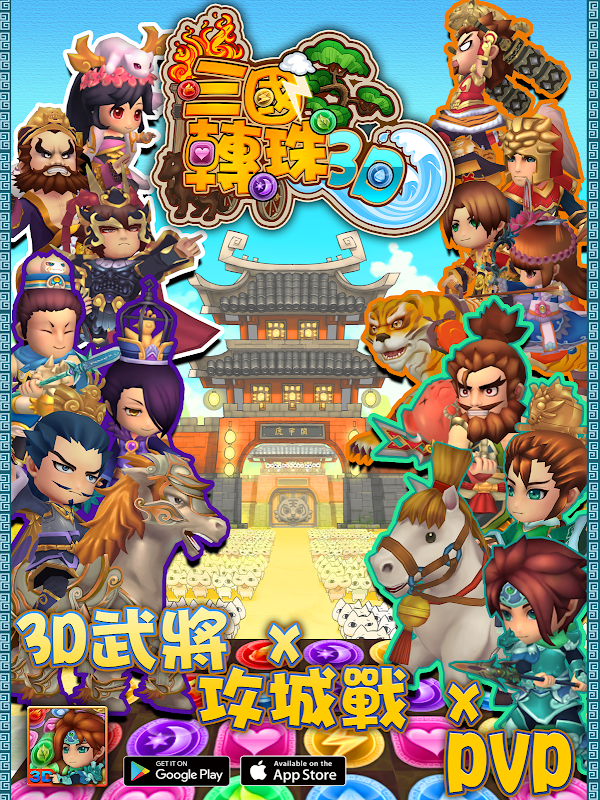 《三國轉珠3D》3D武將 x 攻城戰 x PVP 轉珠+手遊+攻城?玩家大廳即時聊天!雙人同屏PVP對決!問鼎PVP頂上至尊!真正多人在線轉珠Game!